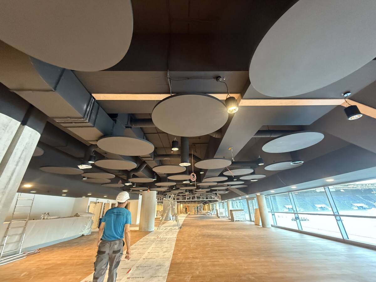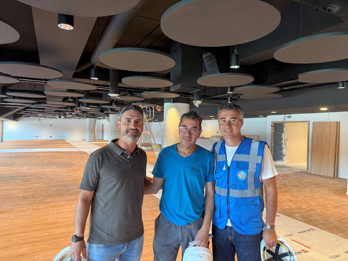 Saïd, c’est plus de 24 ans d’expérience chez Reatech. Il supervise l’ensemble du chantier, avec rigueur et expertise. Sur cette photo, il est plus particulièrement en train de suivre la pose des Solo Circle noirs, une solution acoustique que nous installons avec exigence et savoir-faire.