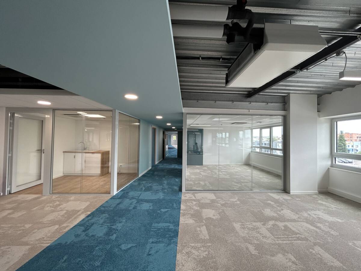 Les photos présentées illustrent notamment notre cloison double vitrage bord à bord, un élément phare du chantier.